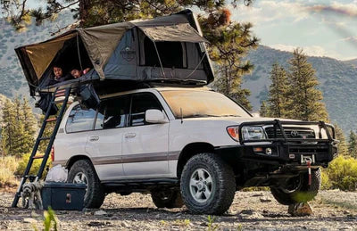 The Overland Junction Golden is a pop-up hard shell roof top tent. It can be set up in less than 60 seconds and provides extreme weather protection with high-quality fabrics and industry-leading waterproofing. But best of all, you can completely drop those strong walls for truly 360-degree, panoramic views. All from your 2.75" high-density foam mattress.