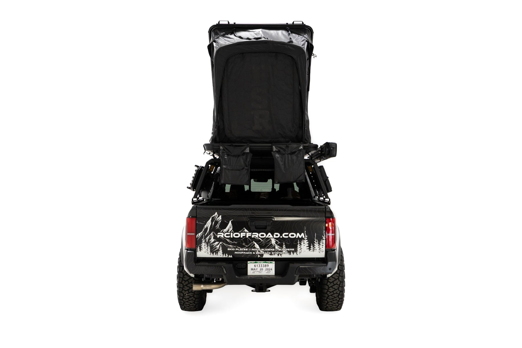 Interior Setup: Memory foam mattress, LED lighting with USB ports, gear grid, shoe bags, and storage pockets.