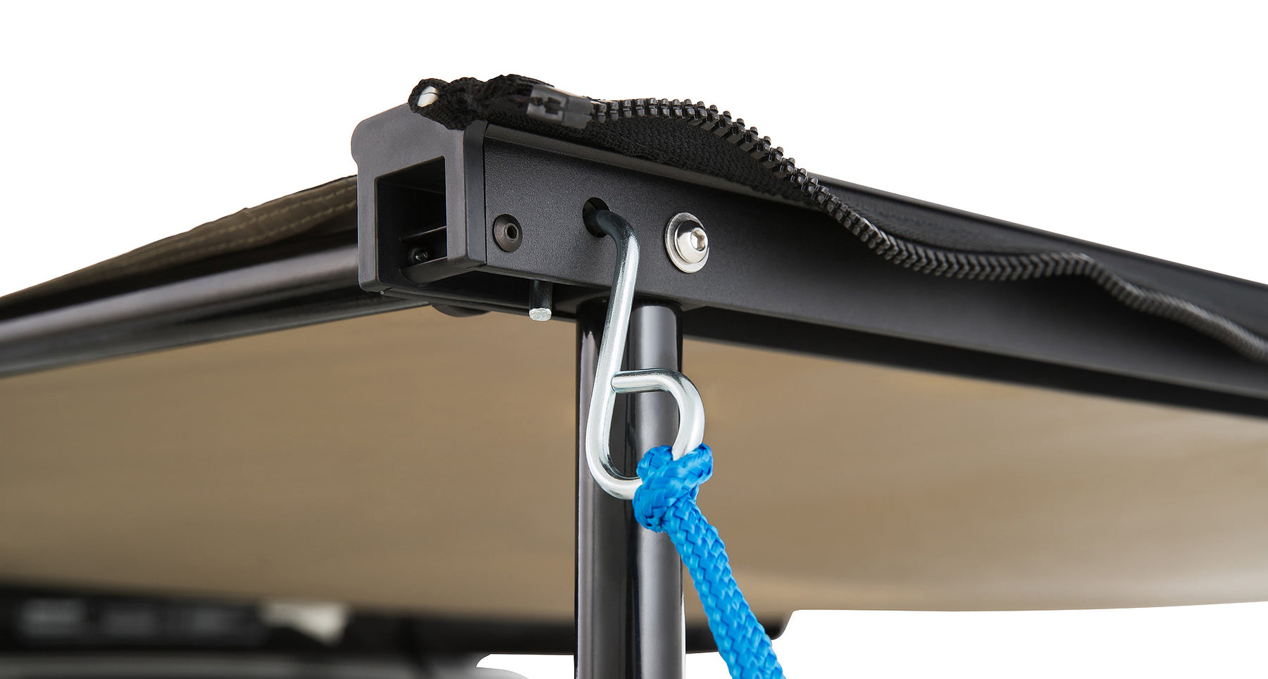 A: The STOW iT Awning Bracket System allows for quick and easy removal and storage of your awning when not in use. It features patented Zwifloc channel nuts, enabling flexible placement of brackets anywhere along your vehicle’s mounting channels without disturbing other accessories.