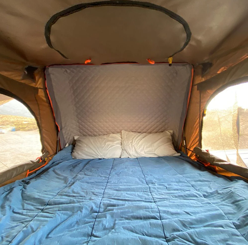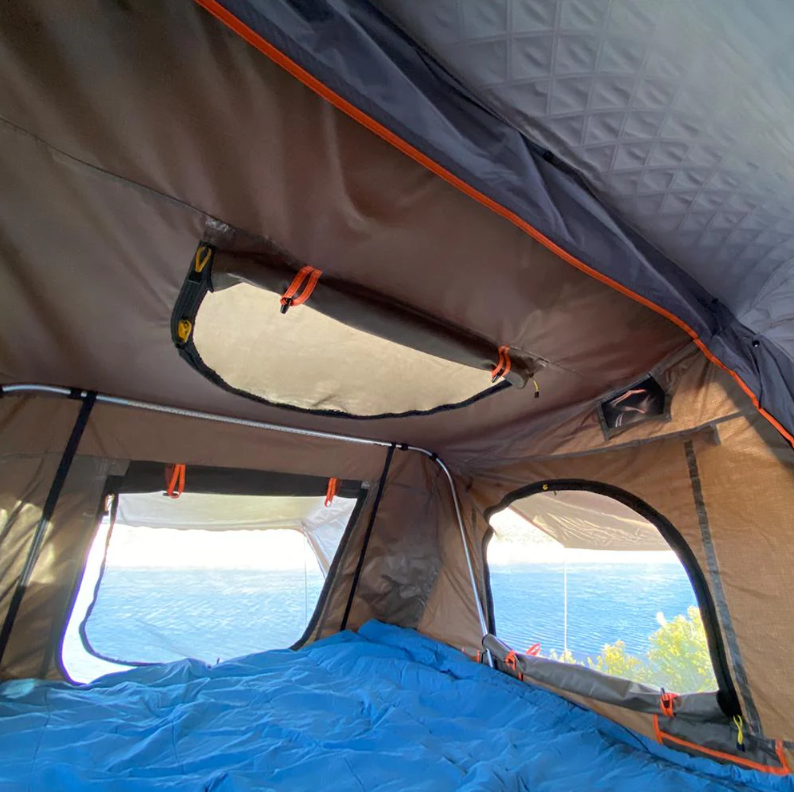 Setup is fast—around 30 seconds—thanks to its clamshell mechanism, making it one of the most convenient rooftop tents available. Inside, you’ll find a memory foam mattress, integrated storage options, and ventilation features that keep the tent livable in any condition.